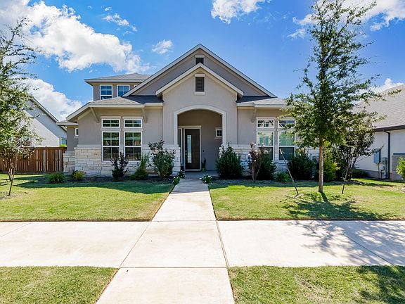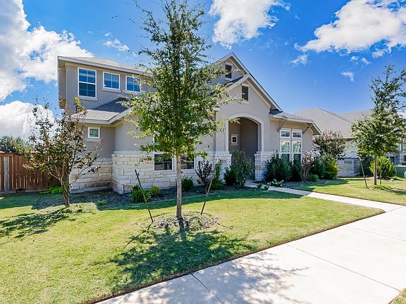 Beautifully designed two-story home built in 2022, in the desirable Deerbrooke community. This 4 bedroom, 2.5 bath residence features an open floor plan with all bedrooms on the main level and a spacious game room game room on the upstairs. The gourmet kitchen includes modern appliances and connects seamlessly to the bright living area with vaulted ceilings. The primary suite offers a luxurious soaking tub and walk-in closet, while the backyard features a covered patio ideal for outdoor entertaining and it is located very close to a shaded park. Community amenities include an infinity pool, full-size gym, scenic trails, and a clubhouse. Located in the Leander ISD near Hisle Elementary, Danielson Middle, and Glenn High. This home blends comfort, style, and convenience in one of Leander's most sought-after neighborhoods. Refrigerator, Washer and Dryer included.