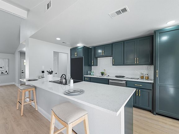 The open-concept living areas are bright and inviting, featuring vaulted ceilings and abundant natural light. The chef’s kitchen showcases all-new cabinetry, backsplash, quartz countertops, and stainless steel appliances. Perfect for entertaining, the floor plan offers a seamless flow between the kitchen, dining, and living spaces.