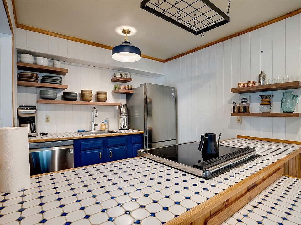Cute and cozy condo walking distance to ski slopes! Located on Village Drive, this ground floor Meadowlark 2 bedroom, 1 bath condo is perfect for a local or second homeowner. The newly remodeled kitchen is fun, bright and welcoming with new appliances, hanging shelves, and modern light fixtures. The main living area is warm and cozy and includes a gas fireplace, accent rock wall, and fresh white walls. Curl up on the couch with a good book and a cup of coffee, or walk home from a great powder day and entertain guests with cocktails or hot cocoa at the built-in bench table. Step through the sliding glass doors and enjoy the fresh mountain air on your walk out patio. In both bedrooms you’ll find a new laminate vinyl flooring and new fixtures. The primary bedroom has a large window and provides lots of natural light. Use the second room as a spare bedroom or home office. The unit also includes its own washer/dryer and ample indoor and outdoor storage space. Meadowlark complex is located conveniently on the bus line, a 10-minute walk to Steamboat Mountain base area, and a short distance to the Yampa River and core trail. With low HOA dues, this is a very local friendly neighborhood with a true Steamboat vibe. Don’t miss out on your opportunity to buy in Steamboat!