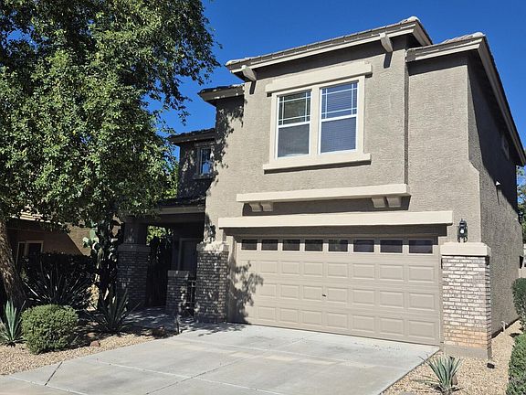 Two-story, extra clean, well maintained, three-bedroom home with excellent floor plan including convenient upstairs laundry room with washer and dryer plus additional amenities, which is easily accessible to shopping, schools, I-17, and a community swimming pool. Upper floor includes primary bedroom with ensuite full bath and walk-in closet; two additional bedrooms, plus an additional full bath, all with ceiling fans; tiled floor office; and an open bonus family/ multi-purpose area. Fully tiled downstairs includes kitchen with all major appliances and walk-in pantry; entry guest bathroom; dining and living areas; and covered back patio. Home has a walled, fully enclosed and secure backyard with trees; and a two-car garage with an Electric Vehicle Charging Port, plus storage cabinets.