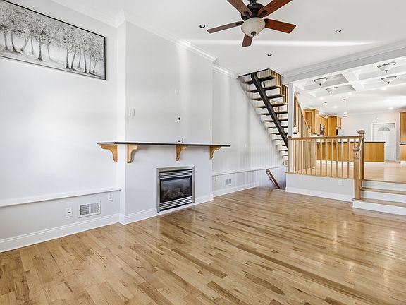 Bright, extra-wide corner unit in a highly walkable Patterson Park neighborhood. This home features hardwood floors throughout, end-unit windows that flood the space with natural light, and a rare attached two-car garage. 3bd/2.5ba plus two bonus rooms. Enter into a spacious living room with a cozy gas fireplace, followed by a dining room that seats eight comfortably. The open kitchen includes stainless steel appliances, a breakfast bar, and a bonus freezer, with direct access to the garage.