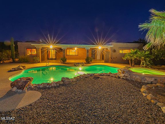 Enjoy the charm of classic Tucson living in this ranch-style home set on 1 acre in the desirable Bel Air Ranch Estates. Surrounded by mountain views & saguaro studded desert beauty, this home offers comfortable living with room to grow. The single-level floor plan features generous living spaces, natural light & timeless character throughout. The updated kitchen offers custom cabinets, granite countertops, island, breakfast bar & nook. Primary suite with built-in cabinets & updated bath with separate tub & walk-in shower. The expansive lot with detached workshop, sparkling pool & spa provides endless outdoor entertaining. Peaceful setting with easy access to shopping, dining, and outdoor recreation in Northeast Tucson. Don't miss these Mountain, Sunrise & Sunset VIEWS! Call today!