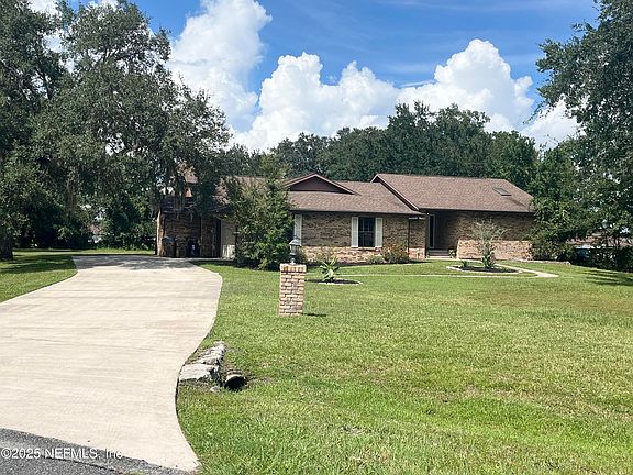 Welcome to this stunning custom-built one-story brick home on a .96-acre lot with serene lake views. Featuring a newer roof, this move-in ready home offers comfort, style, and space. Inside, enjoy wood and tile floors in main areas, carpeted bedrooms, and an open layout. The updated kitchen includes granite counters, modern appliances, and ample cabinets, flowing seamlessly into the living area. The oversized master suite boasts a huge walk-in closet and spacious bath. Two additional bedrooms plus an office/4th bedroom provide flexibility. Relax on the oversized rear porch overlooking the screened-in pool—perfect for entertaining. The 2-car garage with opener, storage, and extended driveway offers room for cars, boat, or RV. Conveniently located near shopping, dining, schools, SunRail, and just 20 minutes from Disney, Universal, and SeaWorld. Don't miss this rare opportunity—schedule your private showing today!