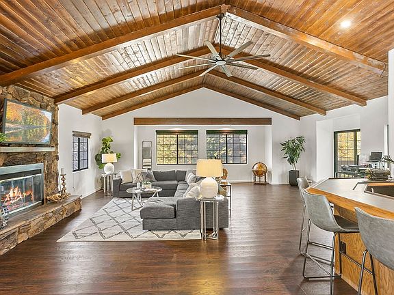 An entertainer's dream come true, this property features a spacious open floor plan, impressive outdoor spaces with fenced backyard and spectacular views. Located in the highly coveted Enchanted Forest Estates; this is a stunning 3 bedrooms, 2full bathrooms with additional powder room home, is one to not be missed! The new custom Trex decking is a true masterpiece of design. Soaring high ceilings in the family/living area with a gorgeous fireplace will be the perfect setting to spend quality time relaxing in your peaceful retreat. The full walk up wet bar is an entertaining dream come true. The incredible open modern kitchen offers function and space to enjoy meals with family and friends. New stainless steel appliances and custom backsplash are sure to impress. A true pride of ownership with a new roof, exterior paint and central heat. The oversized attached garage with additional workspace is perfect for any hobby: big or small. Located on a treelined cul-de-sac; this home is conveniently located near the 330 frwy, you will be in town on flatland within minutes. SkyPark at Santa Village or Lake Arrowhead is only short 15min drive away. This property is everything you could ever want and more! Professional photos coming soon!