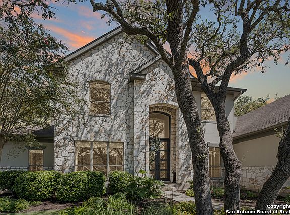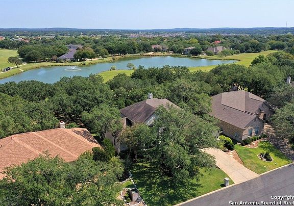 STUNNING, meticulously updated, custom two-story home on the 4th hole of Blackjack golf course in Fair Oaks Ranch w/ lake views from the kitchen and family room! This home features 5 bedrooms, 3.5 bathrooms, a 2 car garage and 4085 immaculate square feet. The front entry invites you in with 20' ceilings, custom, high-end steel doors and transom leading you directly into the wine room and tastefully updated home office. The open-concept main living area stops you in your tracks with direct views of the golf course, an elegant wood burning fireplace and a completely remodeled kitchen! The kitchen has many custom, designer finishes including a large walnut island equipped w/farm sink, custom cabinetry, limestone countertops, glass backsplash, designer lighting and Thermador and Fisher Paykel appliances. First floor master suite has patio access, tons of natural light and has been completely updated and upgraded! Master features french oak cabinets, limestone counters, free standing tub, honed marble and stone walk in shower, porcelain tile flooring and upgraded lighting and fixtures. Leading you upstairs is the modernized staircase with custom designer railing. The 2nd floor has been refreshed with updated lighting, mirrors, faucets, carpet and paint! Enjoy the tranquil east-facing deck open to the lush golf course through the shaded canopy of trees! The outdoor space this home offers is second to none with its breath-taking scenery, close proximity to the pond and abundance of wildlife. WELCOME HOME!