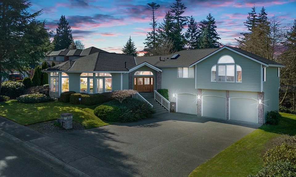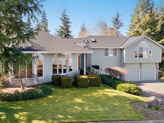 WOW! Don't miss out on this sprawling 4 Bed, 3 Bath home situated on a 1/3 acre lot with views of the Puget Sound and Poverty Bay! Built to exacting standards to maximize the sound views, this home features a light and open floor plan with ample windows to take advantage of all the natural light. The grand entryway opens up to the tiled foyer & the formal living and dining spaces then flows to the spacious kitchen, complete with Quartz countertops, a breakfast nook, and butler's pantry. Main level also features a full bath & office with built-ins. Upstairs you'll find another full bath, a large utility room, 2 bedrooms, and the stately 5 Piece Master Suite. 2 Covered patios, deck, Sport court, and insulated 3 Car Garage with shop space!