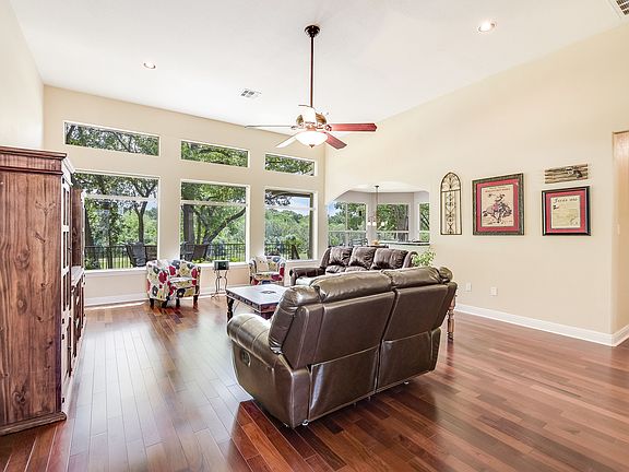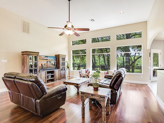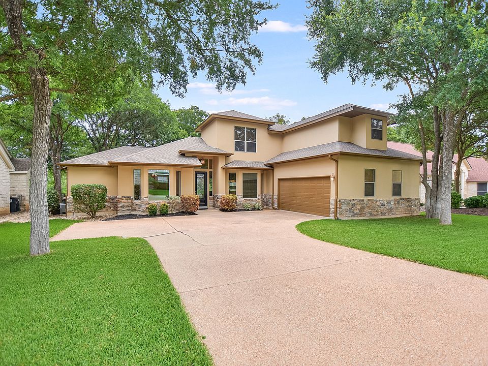 Enjoy Country Club life where Berry Creek meanders through a private 18-hole Golf Course. A community of custom architecture, large lots, mature trees & friendly neighbors. Striking home w/modern-flair,views of the 10th fairway, 4 Beds (1 main level master+1 guest suite down), Office, Formal Dining, 3 Full Baths, Game+Media Room. Rare find of custom features, SQ.FT, VIEWS & LOW TAX RATE! Low-maintenance xeriscape backyard! Residents pay a mandatory deed fee in Berry Creek