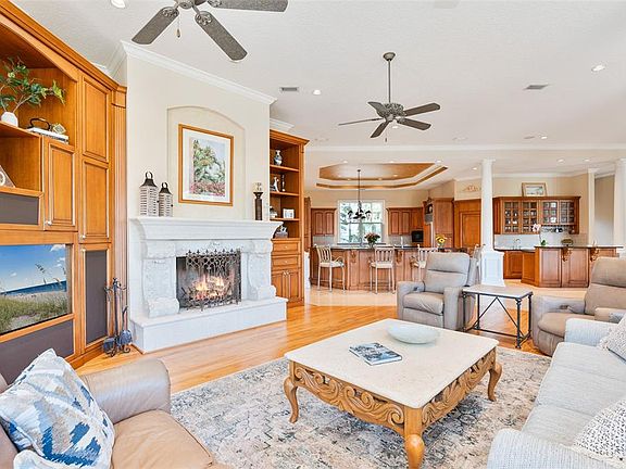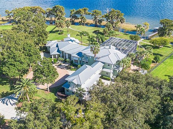 Experience a rare blend of serenity, sophistication, and lakefront living on the pristine shores of Lake Harris, part of Central Florida’s famed Harris Chain of Lakes. Tucked behind a private gated drive, this extraordinary property spans 3.06 acres with the added benefit of 46± acres of protected conservation land, creating a sense of unrivaled privacy and natural beauty. Inside the 8,596-square-foot custom residence, craftsmanship takes center stage. Walls of windows capture shimmering water views from nearly every room, while rich design details, from diagonal-laid hardwood floors and porcelain tile to tongue-and-groove, barrel, coffered, and tray ceilings, set an elegant tone. Handcrafted millwork, a stunning leaded glass entry, granite surfaces, multiple fireplaces, and upscale finishes add warmth and timeless appeal. The home was designed for both quiet moments and unforgettable gatherings. An open chef’s kitchen flows into welcoming dining and living areas, perfect for entertaining. Additional spaces include a first-floor game room with its own chilled wine room, a private office with custom woodwork, a dedicated homework station, and a versatile bonus room over the garage, ideal for a theater, guest suite, fitness area, or creative retreat. Each bedroom features a private ensuite bath, offering comfort and privacy for family and guests alike. Step outside to an outdoor haven where you can wander a serene path to a lakeside firepit, relax by the pool, or enjoy your private boathouse with dual lifts for effortless days on the water. The expansive, beautifully landscaped grounds have even hosted picturesque weddings, making this estate as enchanting for events as it is for everyday living. All this tranquility comes with surprising convenience. You’re moments from charming downtown Leesburg and Mount Dora, with nearby golf, shopping, dining, and healthcare options such as UF Health and AdventHealth. Leesburg International Airport is close at hand, while Disney and Orlando International Airport are less than an hour away. This is more than a home, it’s a private lakeside retreat designed for refined living, effortless entertaining, and unforgettable memories.