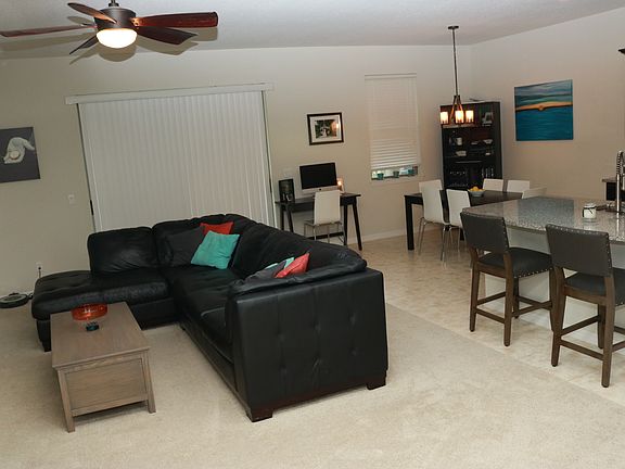Come check out this amazing 4 bedroom 2 bath home in the highly sought after neighborhood of Sullivan Ranch. Since this home is less than 3 years old, the complete builders warranty will transfer to new owners. This home boosts almost 2500 sq ft of living space and with an open floor plan concept that's great for entertaining. The kitchen features granite counter tops, as well as, 42-inch solid wood cabinets. The must have 3-car garage, is yet another bonus, you get with this great home! Oh, and did I mention, that there are NO REAR neighbors, so when you watch the gorgeous Mount Dora sunsets from your back patio the privacy makes it that much more enjoyable. Brand new beautiful laminate flooring was just recently installed and flows throughout the main living areas. The community is wonderful as well, and comes complete with an amazing playground, splash pad, dog park, a junior-size olympic swimming pool, a clubhouse for entertaining, a state-of-the-art gym that recently got all new equipment and machines, and miles of walking trails that wind throughout the neighborhood, where you are able to enjoy the beautifully designed landscaping and picturesque views of nature and beauty that the neighborhood prides itself on. The theater system and movie projection screen does not convey, though it can be negotiated into price.