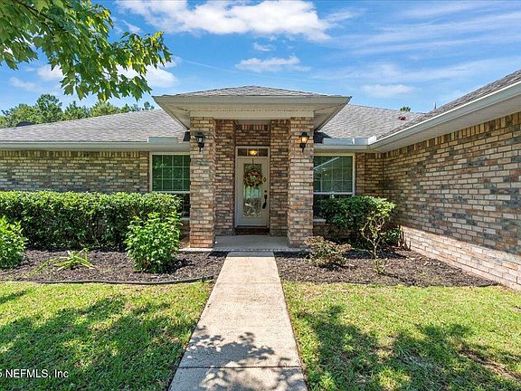 Clay County brick beauty, now for sale! This home has been lovingly maintained and is now ready for a new owner! Get away from the hustle and bustle of new construction and come see the tranquility of this home tucked away in a small community, off Santa Clara with quick access to Blanding, shopping, and minutes to First Coast Expressway access. Inside has been freshly painted in a trendy, neutral color (Greek Villa) while outside the timeless brick adds warmth and instant curb appeal. The over a HALF ACRE lot, is fully fenced in the rear with low maintenance white vinyl, complete with a paver patio and fire pit. The floorplan is perfect for the upcoming holidays. Hang stockings above the fireplace, host dinners in the formal dining room, and get peace and quiet at the end of the night, due to the split bedroom layout. NEW ROOF going on prior to closing, NEW WATER HEATER installed (2025), and recently replaced windows!