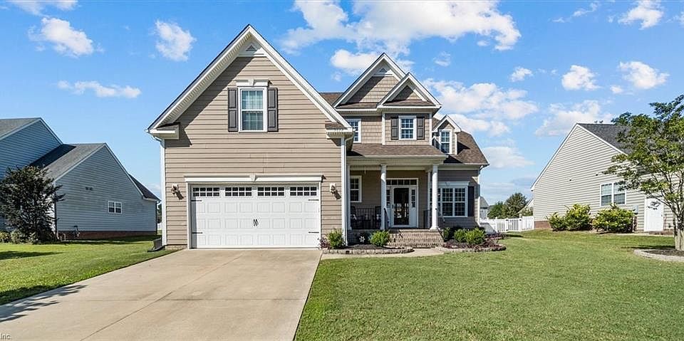Must see this Beautiful 2 Story Transitional home with excellent location in sought-after Saddlebrook! Truly Turn-Key with desirable open-concept floorplan. The 1st floor features the Family Room with vaulted ceiling & fireplace, Formal Dining Room, gorgeous Kitchen with Breakfast Nook, a 1st Floor Primary En-Suite, Laundry Room and a Powder Room for guests. The 2nd floor hosts a Flex Space/Loft, 3 additional traditional Bedrooms, a Full Bathroom off the main hallway, and walk-in storage space plus a traditional attic with pulldown stairs. Highlights include granite counter tops, stainless steel appliances, gas fireplace, attached 2 car Garage with driveway for additional parking, a patio & fenced backyard perfect for entertaining. Updates: fence, patio, storm doors, refrigerator & microwave replaced in 2020, dishwasher 2018, both HVAC coils 2020/2021. Wonderful location in sought-after Suffolk adjacent to shopping, schools and highways for easy commute.