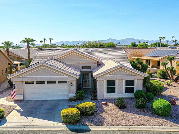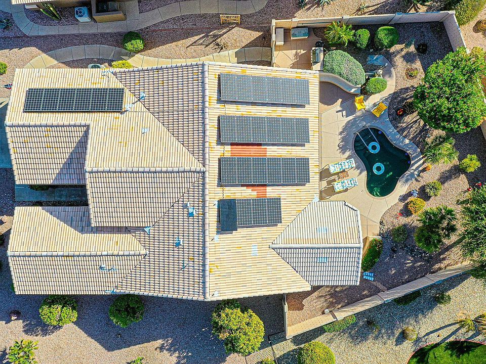New Price --$530,000. $10,000 Flooring Credit at COE with Full Price Offer. New Interior Paint, New Garage Floor! This Custom Greenbriar with Owned SOLAR and a New Roof -2025, a few of a total of $137,000 in upgrades. including all the big-ticket utility upgrades. Thoughtfully expanded, and exceptionally maintained. Expanded entry, great room/dining room, guest bedroom , and room addition off primary bedroom. Updated Kitchen features new cabinets, quartz counter, opened breakfast bar, contemporary backsplash, gas cooktop, and wall oven. Spa-like Updated Baths. Beautiful wood-look laminate & tile flooring. Extended garage, new floor finish, space for your golf cart, attached cabinets water softener. Improvements: Owned Solar 2016, New Roof 2025, Newer Hot Water Heater2023, Newer AC. New Pool decking, pump & blower 2021 /2025 respectively. Extra Insulation added 2021, New Irrigation Control Box, & Updated interior paint 2025. The primary closet is designed with a closet organization system. Built-in BBQ island and covered patio seating area. Picture relaxing afternoons of Food, Fun, and Friends in this private backyard, enjoying music and cocktails in the spool surrounded by a tranquil landscape setting.