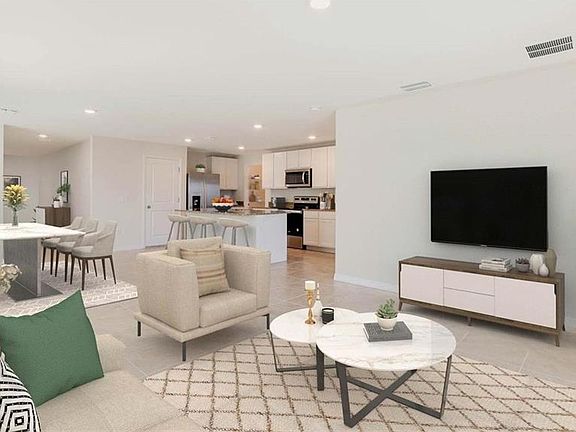 One or more photo(s) has been virtually staged.This all-concrete block constructed, two-story plan has a large open-concept downstairs which includes a well-appointed kitchen, living and dining area, and an outdoor patio. Upstairs, the oversized owner’s suite can easily fit a king-size bed and includes a large walk-in closet as well as an ensuite bathroom with double vanity. Three other bedrooms share a second upstairs bathroom while the loft provides an extra area for work or play. This home comes with refrigerator, built-in dishwasher, electric range, and microwave as well as washer and dryer. Pictures, photographs, colors, features, and sizes are for illustration purposes only and will vary from the homes as built. Home and community information including pricing included features, terms, availability, and amenities are subject to change and prior sale at any time without notice or obligation. Room Feature: Linen Closet In Bath (Primary Bedroom).