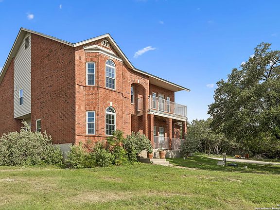 STUNNING VIEWS ON NEARLY 2 ACRES!! Situated on an expansive lot with 10-mile views and easy access to 281, this exceptional home is built for both comfort and entertaining. Boasting multiple living areas-including a spacious Texas-sized game room with custom cabinetry-there's room for everyone to spread out and enjoy. The chef-inspired kitchen features granite countertops, prep sink at the island, a massive pantry, and elegant glass door display cabinetry. Energy efficiency is top of mind with double-pane vinyl windows and a radiant barrier roof. The family room's Texas-style fireplace adds cozy charm, while recessed lighting and updated fixtures bring a modern touch. Upstairs, glistening wood floors lead you to generously sized secondary bedrooms, including one with access to a private deck and sweeping views. The luxurious owner's suite is flooded with natural light and features a beautifully tiled shower. Outside, a 30x20 pavilion is ideal for gatherings, offering the ultimate space for outdoor entertaining. A paved driveway provides ample parking with extra room for RV and boat parking, making this home a rare blend of style, function, and freedom. HVAC and roof replaced in 2020. ALL new vinyl windows 2024. SEE THIS ONE TODAY!!