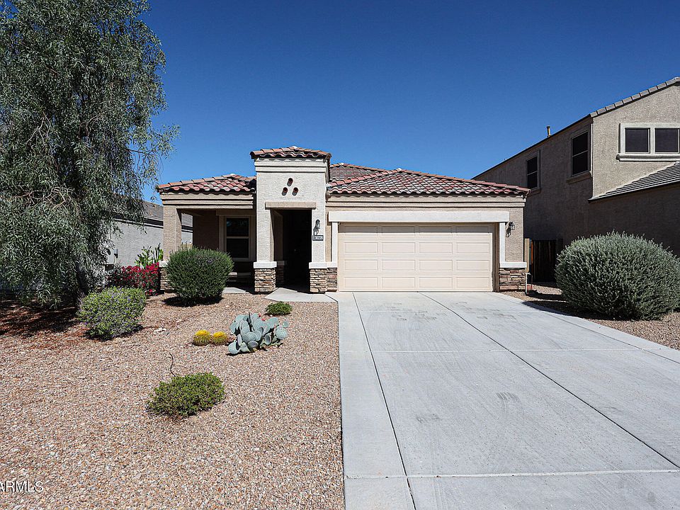 Welcome to this charming 3-bedroom, 2-bath home in the desirable Tartesso subdivision of Buckeye! Step inside to a bright, open floor plan with a spacious great room that flows seamlessly into the kitchen. The kitchen features granite counters, a large island with breakfast bar seating, stainless appliances, and plenty of cabinet space—plus a brand-new dishwasher and garbage disposal for added convenience. Just off the kitchen, you'll find a cozy dining enclave, perfect for family meals or entertaining guests.The primary suite offers a private bath with dual sinks and a walk-in closet, while two additional bedrooms provide flexibility for family, guests, or a home office. Outside, enjoy Arizona living on the covered patio overlooking a low-maintenance desert-landscaped backyard.