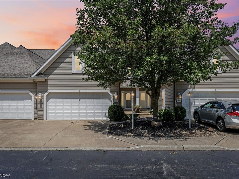 Buyer's financing fell through! Gorgeous, sunlit three-bedroom, 2 1/2 bath Vista Lago move-in-ready townhome condo. Convenient to Crocker Park, Westlake Recreation Center, freeways, and medical facilities. Elegant foyer leads to open concept spacious kitchen with ample prep and storage space, Jenn-Air gas stove, all kitchen appliances and granite countertops. Living room, featuring beautiful hardwood floors, is very inviting, filled with soothing colors and plenty of natural light. Click on the gas fireplace for perfect ambiance on upcoming chilly winter evenings. Open the slider door and step outside for enjoying morning coffee on your semi private back patio with beautiful garden. First floor has a guest closet, and door to private home office as well as a convenient half bath. Unit also has two car attached garage and driveway. Upstairs there is a perfect loft for studying or crafting. The owner’s suite features a walk-in closet, private bath, and double vanity with soapstone countertops. There are two additional bedrooms and another full bath with granite countertops. Full basement with workspace to finish as you like. Water heater new in 2021. Garbage disposal new in 2022. Gas fireplace with remote starter. New roofing installed in July 2024, total tear-off, no assessments. Programmable thermostat pairable with cell phone, along with new HVAC installed in July 2023. Click on virtual tour to see video and 3D layout of property.