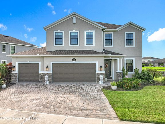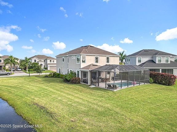 This lakefront pool home in the heart of Viera is located in Sierra Cove just less than 1 mile from I-95 and a part of Brevard's Premier School District. This sprawling 5 bedroom 4.5 bathroom lakefront pool home is loaded with extra's. Boasting a gourmet kitchen with a gas stove, impact windows, plantation shutters, built in wall units, reverse osmosis water filtration system, exterior termite protection, security system, google home and smart home wired. Includes a 3 car garage to accommodate your golf cart. The outdoor living has an inviting inground screened pool with a very large deck over looking a winding pond. This golf cart community includes a resort style swimming pool and children's pool, Tennis, Pickleball and Basketball courts, children's park, dog park and a large activity center. This home is truly turnkey