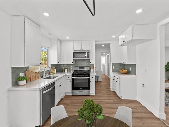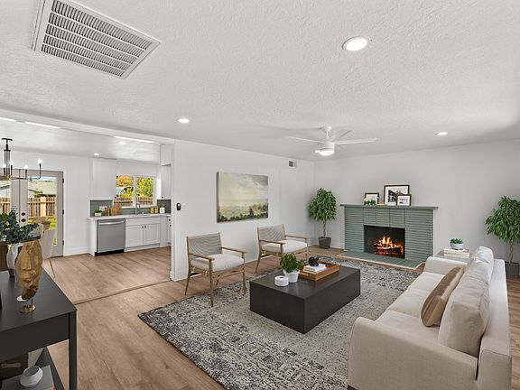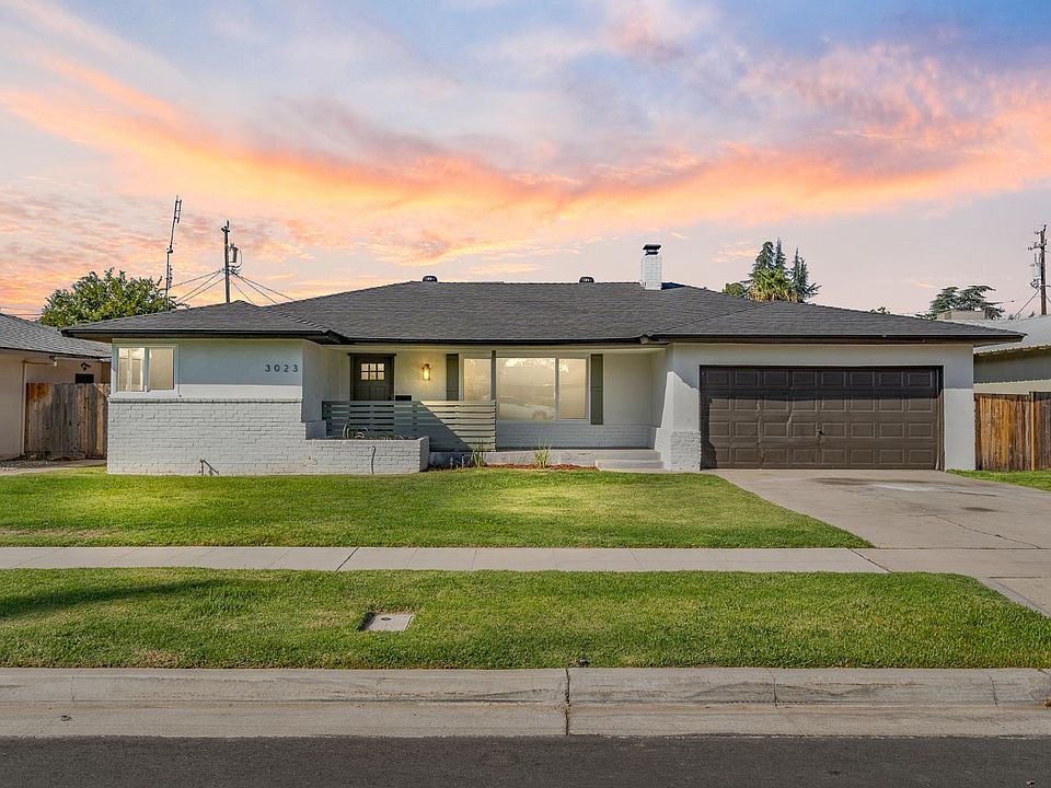 Brimming with contemporary updates, this turnkey home sits on a quiet cul-de-sac. The bright 1,344 sq ft interior boasts refined finishes. Beyond the covered front porch, the living room, featuring a fireplace, introduces the new vinyl wood flooring, eggshell-hued paint, and sophisticated lighting found throughout. Designed for today's lifestyle, the updated kitchen is stunning, complete with white cabinetry, quartz countertops, and stainless steel appliances. Flanking this meal prep space is an elegant dining area and convenient laundry room. Two guest rooms are positioned adjacent to a shared bath. A double closet and stylish new bathroom with tiled shower join the sublime owner's suite. Enveloped in lush grass, the large, private yard is ready for outdoor play. Amenities include a two car garage, new roof and windows. Einstein Park, Target and Manchester Park are within walking distance. Nearby Freeway 41 offers a 10 minutecommute to Fresno's shops and dining.