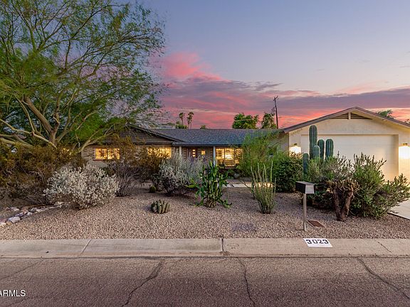 Experience this sleek, modern desert oasis in Phoenix, living in this fully renovated single-level home by Starion Custom Residences. Offering 3 bedrooms, 2 bathrooms, and 2,013 SF of stylish living space, this property is designed with both comfort and sophistication in mind. Step inside to find an open floor plan with vaulted and raised 9' ceilings, concrete flooring, and thoughtfully placed lighting. The chef's kitchen boasts quartz countertops, sleek flat-panel cabinetry, a wet bar, and premium KitchenAid appliances. Smart home features, including integrated lighting, Nest cameras, and an electronic front door lock, add convenience and security. Enjoy year-round efficiency and comfort with new dual-pane windows, two newer A/C units, spray foam insulation, and solar panels with a . . . backup battery. All utilities electrical, water, plumbing, and sewer, have been completely replaced, along with a brand-new electric panel and buried backyard lines. A gas, tankless water heater, and water softener further enhance the home's modern upgrades. Step outside to a true entertainer's paradise. The backyard showcases a new pool and spa (gas-heated), a beautiful travertine deck and patio, a gas fire pit, and a gas line all set for a built-in BBQ. The professionally designed landscaping features desert plants, drip irrigation, and low-maintenance artificial turf. Car enthusiasts will love the 873 SF 4-car garage, with an electric car charger, perfect for storage, hobbies, or a workshop. Located minutes from Phoenix Children's Hospital, the Biltmore area, Royal Palms Resort, and many desirable dining and shopping spots. This property offers the perfect blend of high-end design, energy efficiency, and modern conveniences, truly a rare find in Phoenix.