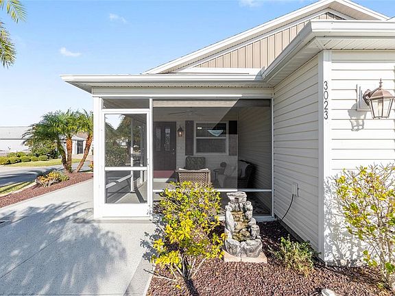 Village of Fenney – Longleaf Villas – Amazing FURNISHED Villa with many UPGRADES!! – If you are a Nature Lover and Enjoy the Outdoors, then this Villa is for you! The Village of Fenney has Beautiful Trees, Natural Foliage, Trails and Gray Fox & Red Fox Hammock Golf Courses close by! - Built in 2017 with 1,148 Sq FT, 487 Sq Ft “L” Shaped EXPANDED Garage on a CORNER LOT! – WHOLE HOUSE WATER FILTRATION SYSTEM, Tankless Water Heater, Gutters & Downspouts - CUSTOM LANDSCAPING with Stacked Stone Curbing with Rock Mulch Beds, Miniature Date Palms, Flagpole, Custom Lighting, RETRACTABLE AWNING over Side Patio, Irrigation System and CUSTOM Painted & Textured Driveway with Custom Design, Walkway and Patio. ** Screened Front Lanai with Custom Painted & Textured Concrete Flooring and Roll-down Privacy Shades ** Enter this BEAUTIFUL Ruby VILLA to find NEW LUXURY VINYL FLOORING (Oct 2025) Thru-out the home, NEW SOLAR TUBES (3) with Solar Night Lights (Oct 2025), High & Vaulted Textured Ceilings, Ceiling Fans, BLINDS & CUSTOM CORNICES – Open Floor Plan – Light & Bright Dining Room & Living Room with Slider Door to Side Patio & Ceiling Fan with Lights – Kitchen with Built-in Custom Coffee/Buffet Bar with Wall Mounted Cabinets, Base Cabinets & Drawers. Kitchen Peninsula with Breakfast Bar Overhang. Stainless Appliances: Side-by-Side Refrigerator with Water & Ice on Door (June 2018), Dishwasher (2017), Gas Range with 5 Burners (2017), Mounted Microwave (2017), AND GARAGE REFRIGERATOR Conveys (2017). The INSIDE LAUNDRY NOOK Is in the Kitchen hidden behind louvered doors for easy access!! –- Primary Bedroom with Vaulted Ceiling, Ceiling Fan with Light, 2 Windows to Backyard, and Primary En Suite Bath with SOLAR TUBE with Night Light, 36” Tall Vanity, Medicine Cabinet, Step-in Shower with Glass Door, Tiled Walls, Tiled Floor, Built-in Tiled Bench Seat, Shampoo Niche, Grab Bar and a 5Ft X 9Ft WALK-IN CLOSET with Pocket-door Entry – Hall with Linen Closet, Bath 2 with Tub/Shower Combo and Bedroom 2 with Ceiling Fan –- EXPANDED “L” SHAPED GARAGE with Epoxy Flooring, Utility Sink, Pull-down Attic Stairs, WHOLE HOUSE WATER FILTRATION SYSTEM & Garage REFRIGERATOR! *** This is a Gas Home!! – Don’t Miss this MOVE-IN READY Gem!!