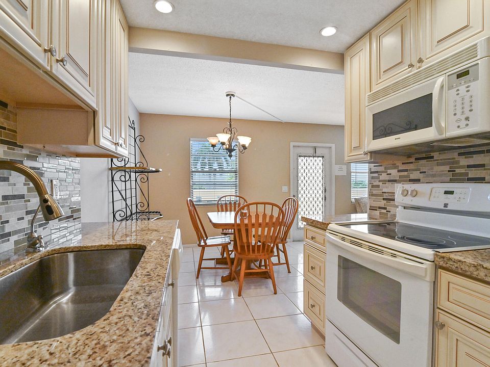 CENTURY VILLAGE, BOCA RATON--SUPER ACTIVE ADULT COMMUNITY. We're excited to present a bright, spacious, 2/1.5 condo by the lake in a highly sought-after area now on the market.The kitchen, living, and dining room areas feature stunning tiles.The recently renovated kitchen is gorgeous and spacious, with quartz countertops, a glass backsplash, beautiful natural wood cabinets, white appliances, and an oversized sink. The master bedroom has carpeting, a large walk-in closet, and sliders leading to the patio, which offers a stunning view of the lake.The fully renovated bathroom boasts a beautiful shower stall and an attractive vanity.The guest bedroom also includes carpeting, a spacious closet, and a large window for natural light. The patio is a safe and peaceful space with glass-in windows and beautiful tiles, perfect for morning coffees or family gatherings.
