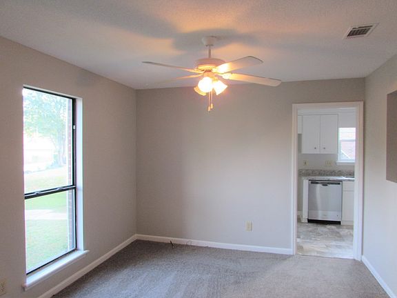 Updated and Move-in Ready! Boasting 3 bedrooms, 2 baths and over 1,500 square feet of living space! Brand new flooring throughout! Dining Room overlooking spacious Great Room which boasts a vaulted ceiling, ceiling fan and wood burning fireplace! Eat-in Kitchen with new Formica countertops, new Stainless Steel appliances & tons of cabinet space! Owner Suite with 2 closets and en-suite bath complete with single vanity, water closet and separate tub and shower! 2 Guest Bedrooms both with carpet and ceiling fans! Full hall bath features single vanity and tub/shower combo! Nice back deck overlooking huge fenced backyard! Outbuilding remains! You don't want to miss out on this gem!