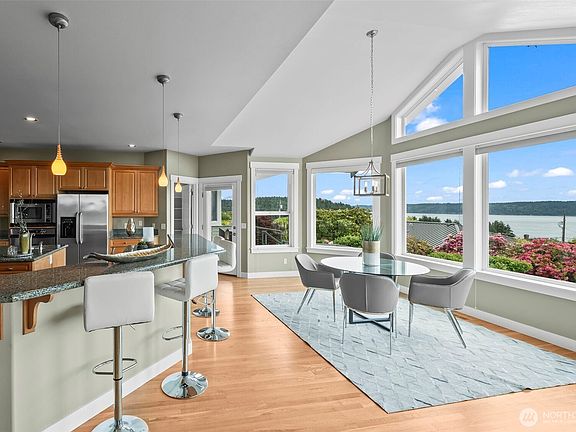 Welcome to this stunning single-level custom home with spectacular views of Mt. Rainier, Puget Sound, and active shipping lanes on a rare 0.874-acre lot. Enjoy a great room with a gas fireplace, spacious primary suite with 5-piece bath and large walk-in closet, and formal dining room. The chef’s kitchen offers granite countertops, stainless appliances, maple cabinets and an oversized walk-in pantry. Two more bedrooms, full bath, powder room, office, and large laundry room feature premium finishes. The 3-car garage includes bench, shelving, and cupboards. Deck with unforgettable views and gardens near downtown and amenities.
