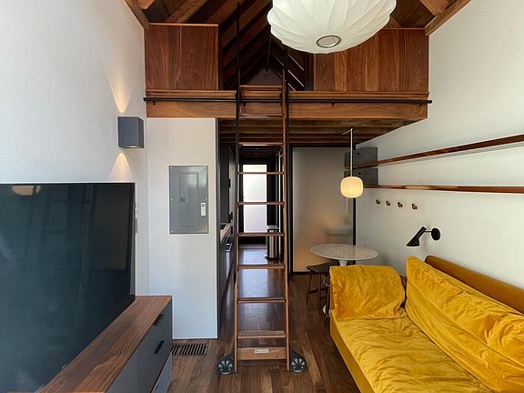 - 1 lofted bedroom (NOTE: accessed via sliding ship ladder, so consider accessibility)