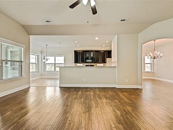 This contemporary brick-and-stone one-story offers a well-laid floorplan grounded by dark laminate floors in the living and formal dining rooms. We love its breezy archways, dining area bay windows, lightly vaulted ceilings with recessed lighting, and attached pergola out back. The kitchen features dark cabinets against a light tile backsplash, breakfast bar, and black appliances. Dual sinks with sitting area, bath, shower, and roomy walk-in closet elevate the master ensuite. Accessible by Hwy 80. About a 10-minute drive to groceries, dining, shopping, and movie theater. See attached offer checklist. This home comes with a 30-day satisfaction guarantee and one-year premium warranty. Terms and conditions apply.