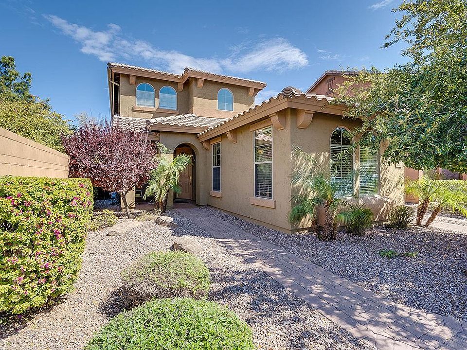 Welcome home to Gilbert's Pecos Manor neighborhood! This wonderful 2,625sqft 3 bed, 2.5 bath home situated with only a neighbor on one side, 2 car garage w/extended driveway, and low maintenance landscaping. Interior boasts formal living & dining rooms, oversized loft upstairs. Eat-in kitchen opens to the living space great for entertaining. Spacious master suite has a charming balcony, full bath with double sinks, separate tub/shower, and walk-in closet. Out back you will find covered patio, and a dog run. Community features lush green areas, common BBQs, and kids' playground. Close to freeways, shopping centers, restaurants and schools. Perfectly located and a must see!