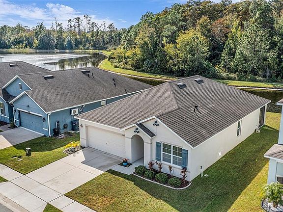 MOVE-IN READY home in the gated Sereno community of Davenport offering 3 bedrooms, 2 bathrooms, a 2-car garage, and a tranquil pond and wooded view with no rear neighbors. This DR Horton “Aria” smart home features a bright open floor plan with neutral paint, ceramic tile in the foyer, kitchen and bathrooms and a split-bedroom layout for privacy. The kitchen opens to the dining and family rooms and includes 36" shaker cabinets, laminate countertops, breakfast bar, stainless steel appliances, a walk-in pantry, and an upgraded backsplash. The spacious family room overlooks the screened-in patio and backyard, providing a peaceful place to enjoy morning coffee or unwind in the evening. The owner’s suite offers a large walk-in closet with built-in shelving and an en-suite bath featuring dual “adult-height” vanities, a glass-enclosed shower, water closet, and linen closet. Two guest bedrooms are located near the front of the home and share a full bath with a tub/shower combo and matching vanity height. The indoor laundry room includes the washer, dryer, drying racks, and extra cabinetry for storage. Updates include ceiling fans in all bedrooms, family room, and patio; new kitchen and guest bath backsplashes; new faucets in the owner’s bath; interior paint; new microwave; and a new motor and opener for the garage door. The screened patio extends the living space and highlights the beautiful pond and wooded backdrop. Sereno is a completed, gated community featuring two resort-style pools, cabanas, playgrounds, walking trails, and conservation areas, with easy access to Hwy 17/92, I-4, ChampionsGate, Celebration, and Central Florida’s theme parks. This well-maintained home by its original owners is move-in ready—offering comfort, privacy, and convenience in one of Davenport’s most desirable communities.