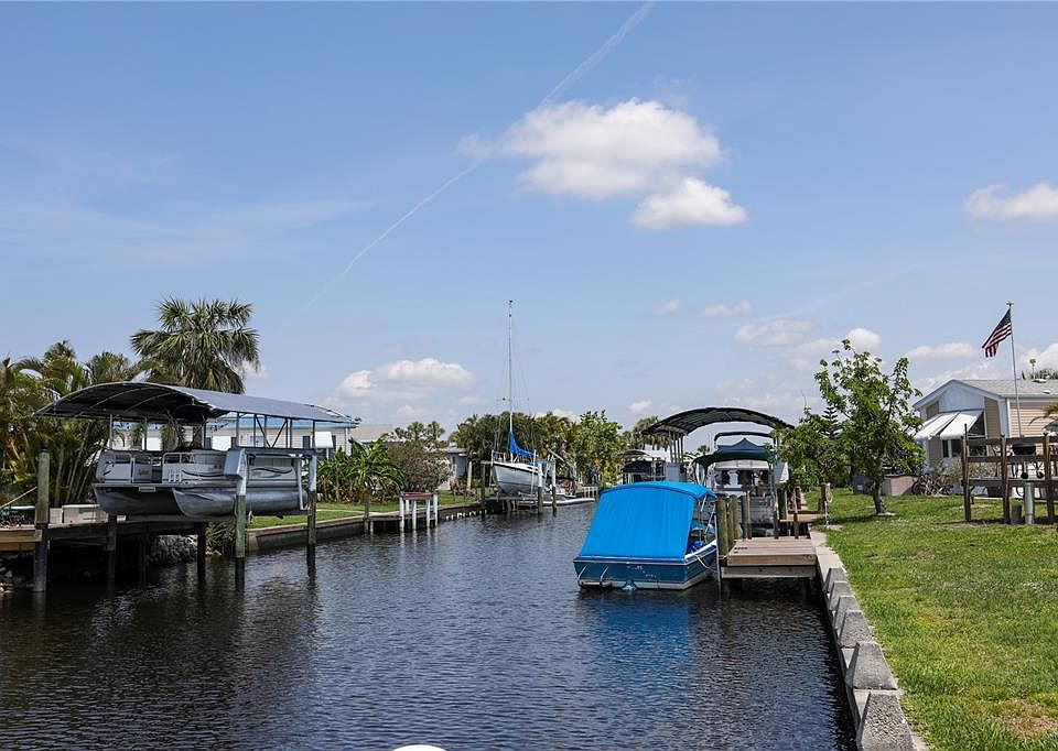 Come stay where the manatees and dolphins play. That's right this highly sought after community called Pelican Harbor located right on the Peace River with the immediate access to the backwaters of the Peace River and Charlotte Harbor and onto the Gulf of Mexico. This turnkey home , with a few personal exclusions, is offered in a 55 plus community, low HOA, only 155 per mo. What more could you asked for? Well let me tell you, beautiful clubhouse heated pool, Bocce ball, shuffleboard all kinds of activities, you will not be bored here. Have a boat? This home is right on your own saltwater canal with dock. Have a small sailboat you can bring that along too. Now let me tell you about the home very spacious open airy floor plan opens to your nice sized lanai overlooking your saltwater canal plenty of storage nice sized bathrooms nice sized bedrooms. The home is a little older, but it's been well cared for and well-loved, metal roof over and more. This is a great place to come spend your winters or make it your full-time home. Pelican harbor is located convenient to airport downtown Punta Gorda. Punta Gorda activities to include farmers markets, festivals, restaurants, biking, walking paths, world class pickleball courts, parks and so much more Do you want to live the good life? This will fit the bill and not break the bank. Carport should be installed in about 8 weeks