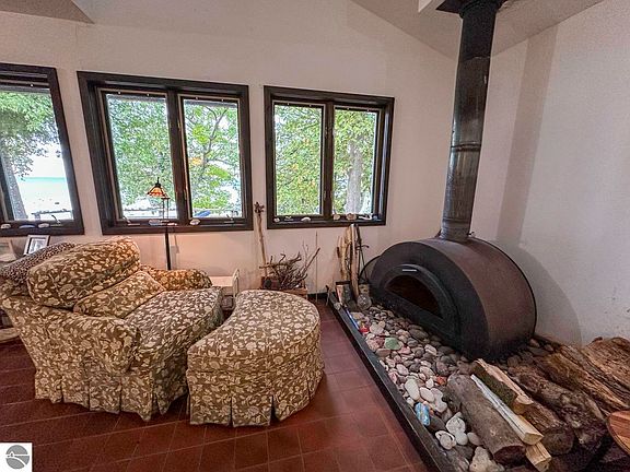 Welcome to your home on Greene’s Bay, offering 148 feet of private Lake Michigan frontage and 2.5 wooded acres. The open living areashowcases expansive water views, while large lakeside decks provide ample space for outdoor dining and relaxation. A separate guestapartment attached to the garage makes hosting friends and family easy and comfortable. Inside, a wood stove creates a cozy retreat oncooler evenings. Outdoors, enjoy sandy beach walks, shaded forest paths, and excellent opportunities for rock hounding, hiking, andbirding. Located just west of the Beaver Island Dark Sky Sanctuary, the property also offers some of the best stargazing in the region.With a balance of natural beauty, privacy, and functional living space, this Greene’s Bay property is well suited as a year-roundresidence, vacation home, or rental investment.