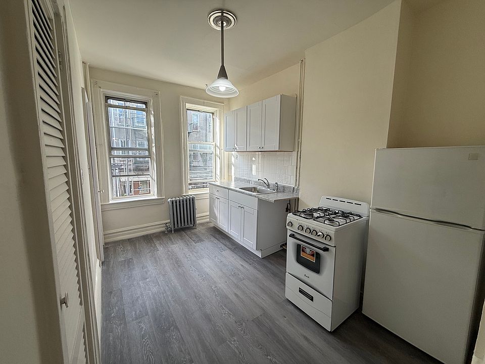 Walk in and find a living room, decently sized space for a small sofa, and a TV and a coffee table . The kitchen is functional: standard appliances, a bit of counter space but not a ton. The bedroom is separate, with a closet. Enough space for a full or queen bed without feeling like you're bumping into walls. The windows let in some natural light. Overall, it's comfortable. Good for someone who just needs something functional, decently maintained, in a reasonable location, near all shops and supermarkets. Sorry NO PETS!
