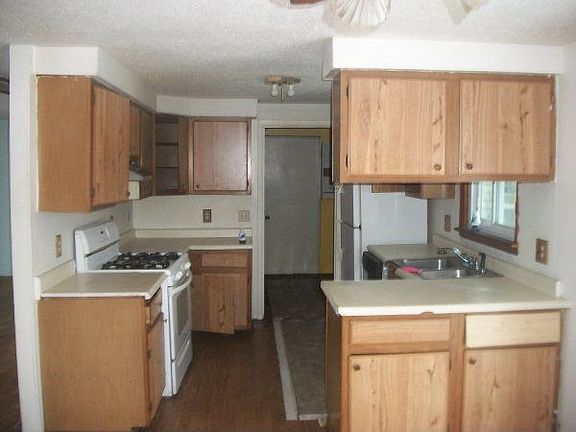 Exterior Features: Single story home. Siding: Vinyl in fair condition. Windows: In Place Soffits and Eaves: In Place Yard: 19994 SF Patio/Porch: Front wood patio. Roof: Asphalt shingle. Driveway: Concrete. Work Shed in back of home. Interior Features: Living Room: Hard wood floors, blue walls, ceiling fan. Dining Room: Hard wood floors, white walls, wood trim, ceiling fan. Kitchen: Vinyl and hard wood floors, counter tops, cabinets, sink. Bathroom: Shower, toilet and sink intact. Bedroom: (1) White walls, no carpet. (2) Hard wood floors, wood panel walls, closet space. (3) Wood panel walls, no carpet. Basement: None Mechanics: Hot Water Tank, Furnace. Garage: Single car attached.Boarded up.