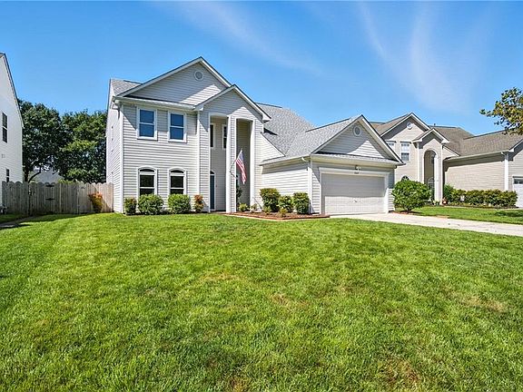 One of Virginia Beaches most sought after neighborhoods, Courthouse Estates is a tree-lined neighborhood with miles of walking and biking trails with abundant common areas for gathering or taking in nature. This 4 bedroom 2.5 bathroom home is situated on a premium lot that backs to an open space for added privacy. The house has been meticulously cared for and tastefully decorated with coastal colors and soothing tones. Natural light shines through the newly installed windows (2023 transferrable warranty) from every room. Relax in front of the fireplace or take a call in your office. Cook a gourmet meal in the spacious kitchen with your newer appliances (2021). Or set up a gym in the 2 car garage on the newly installed Polyaspartic flooring. The HVAC was replaced in 2017 and zoned in 2019, comes with service package. The floor plan flows and feels much larger, the primary has a large en-suite & walk-in closet. Sched private appt NOW!