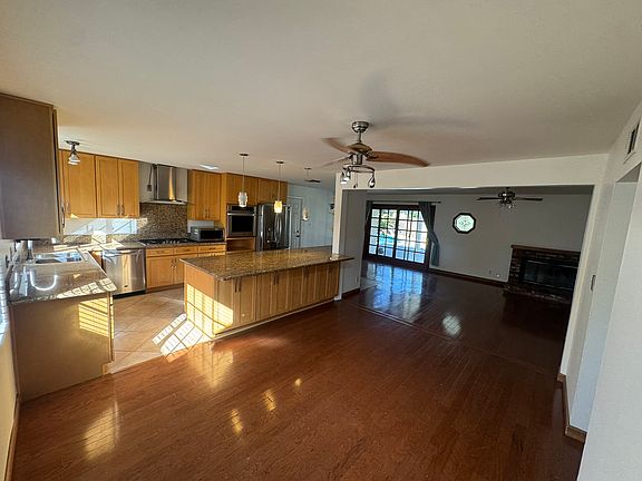 Beautiful Texas tract single story home. Great floor plan with 4 bedrooms and 2 baths with bonus room. Walk into the large Great room concept and the chef's dream of a remodeled kitchen. Extra-large island/breakfast bar, granite counters and plenty of cabinets for storage and counter space. Stainless steel appliances include dishwasher, microwave, stove top, large oven. Large family room with fireplace with direct access to bonus room and rear yard via slider. 4 spacious bedrooms with large closets, including the great primary bedroom with plenty of closet space and en-suite bathroom and direct access to the rear yard. The updated en-suite bathroom has a single vanity and walk-in shower. The hall full bathroom has a single vanity and tub/shower combo. Attached 2 car garage with direct access and laundry hook-ups. Backyard oasis with covered patio, large pool/spa, fire pit and expansive grass area. Central A/C and heating. Kitchen Refrigerator and microwave are included. Pool and gardener included. Just minutes from freeways, shopping centers, schools and more.