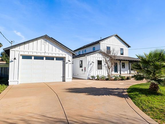 Set on 1.14 acres at the border of Vista and Bonsall, this MODERN FARMHOUSE is one of the most charming properties in all of North County San Diego! A welcoming wraparound porch sets the tone for this peaceful, private retreat with panoramic hillside views and endless possibilities. The home offers 4 bedrooms, 3.5 baths, and approx. 2,740 sqft, including a private in-law suite with separate entry—ideal for multigenerational living, guests, or rental potential. Beautifully upgraded throughout with wood flooring, designer fixtures, and an OWNED 42-panel solar system adding! At the heart of the home is a stunning chef’s kitchen featuring slab countertops, a farmhouse sink, large center island, stainless steel appliances, glass tile backsplash, and a walk-in pantry with charming barn door entry. The expansive, versatile family room is perfect for everyday living or entertaining. Upstairs, the primary suite is a true retreat with a spa-like soaking tub and separate shower. A detached oversized garage and extended driveway provide exceptional versatility for multiple vehicles, boats, RVs/Toys, while two detached storage sheds offer even more flexibility. The generous lot presents a world of opportunity for an ADU, workshop, or expanded outdoor living. Quiet, scenic, and truly unique—this is a rare opportunity to own a modern farmhouse with space, views, and versatility in an exceptional North County location, and ideally located within the Bonsall School District.