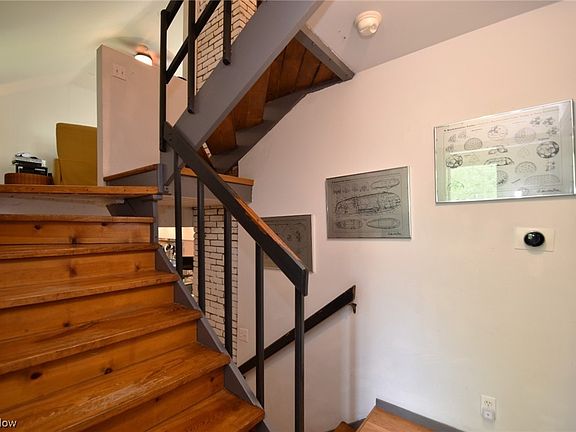 Looking for a midcentury designed home? Come see architect Henry Piper's home. This home in a great location in Cleveland Heights. As you enter through the foyer, you head up some steps to see the bright living room with windows to the 3 story atrium. Up additional steps and enter the primary bedroom with hardwood floors and a private full bath. Just out the primary bedroom door is the laundry room. Back on the entrance level there are 2 bedrooms with great closet space and hardwood floors. One of the bedrooms has a window overlooking the atrium. There is a full bath to service thoe 2 bedrooms. Down to the large kitchen and dining area. The spacious kitchen features open shelving, a pantry and fabulous space to prep your meals. The kitchen opens to the dining room that has access to the atrium. The atrium opens to the lovely back yard that has a newer fence and the retaining wall was rebuilt by the current owners. From the kitchen there is access to a flex space. It could b