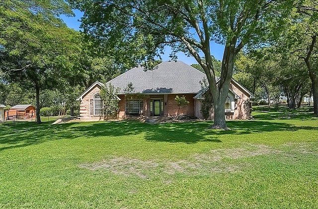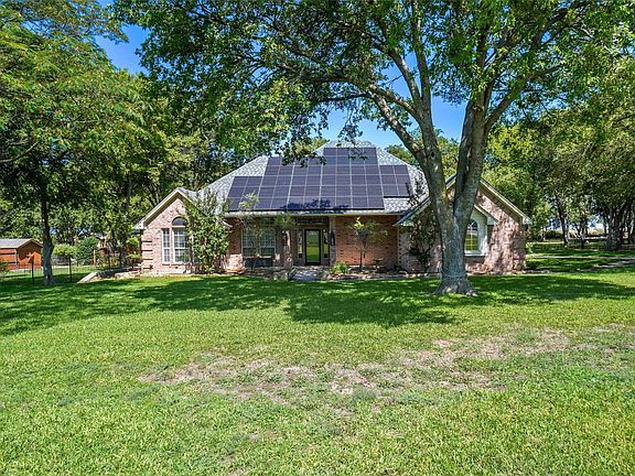 Enjoy the tranquil, peaceful setting this stately home provides, nestled on a heavily wooded 1 acre lot exact is .9741. This spacious 3 bedroom 2 bath home offers both indoor and outdoor living spaces for your enjoyment. Water is sourced from well. Italian tile, wood-like flooring in main living areas, soft color palette throughout, floor to ceiling windows with views of sparkling play pool & large treed backyard. Kitchen boasts of tumbled marble backsplash, granite countertops, stainless appliances, breakfast bar, smooth cooktop, walkin pantry & abundance of cabinetry. Family living space with hard surface floors with beautiful views from the floor to ceiling windows. French doors open to additional space providing room for home office, study, reading or music room. Owner retreat with sitting area & ensuite spa-like bath for unwinding after a long day! Secondary bedrooms with walkin closets. All this and more! A spacious 30x60 shop with electricity & its own large covered porch is the handyman's dream! Perfect for your extra vehicle, woodworking, home business, etc. Possibilities are limitless! Enjoy the outdoors under the majestic trees! Plenty of room to roam, garden or make smores at the firepit. Play pool with tanning ledge for relaxing or pool volleyball. Entertaining & grilling is a breeze with the abundance of covered patios! Country living at its best! Easy access to 287, minutes to shopping & restaurants. Award winning Northwest ISD. NO HOA! NO WATER BILL! BUYER MUST BUY SURVEY, NO SURVEY AVAILABLE! SELLER WILL REMOVE SOLAR PANELS & MAKE ANY NECESSARY REPAIRS TO ROOF AFTER REMOVAL OF PANELS WITH ACCEPTABLE OFFER.