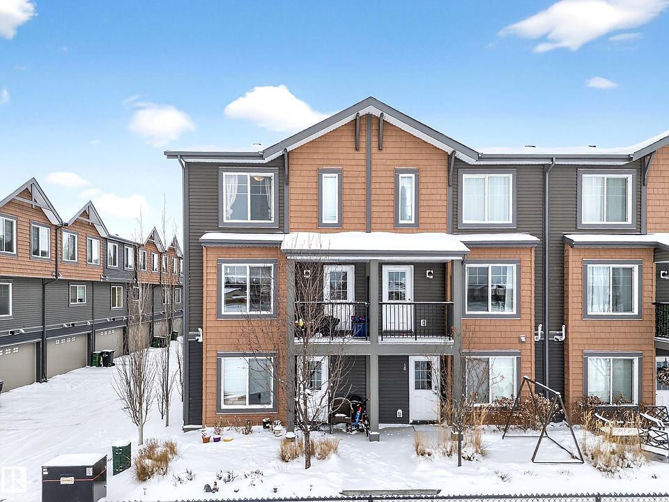 Modern Living Meets Scenic Serenity in Kirkness! Get inspired by this Rare townhouse Corner Unit BACKING onto beautiful GREEN SPACE and playground! As a prime corner property, this home features extra SIDE WINDOWS that invite the sun into every corner. Featuring a gourmet kitchen with quartz countertops, stainless steel appliances, and a walk-in pantry. Relax in the spacious living room by the gorgeous fireplace or host dinners in the dedicated dining area. Upstairs, retreat to the primary suite featuring a walk-in closet and a private 3-piece ensuite. Two additional large bedrooms and a second 4-piece bath (both with quartz counters) ensure plenty of room for family or guests. The ground level offers ultimate flexibility with additional living space, perfect for a bedroom, media room or home office. Highlights: Double attached garage. Balcony overlooking peaceful green space. Walking distance to Kirkness School and Fraser Ravine. Quick access to Anthony Henday and Yellowhead