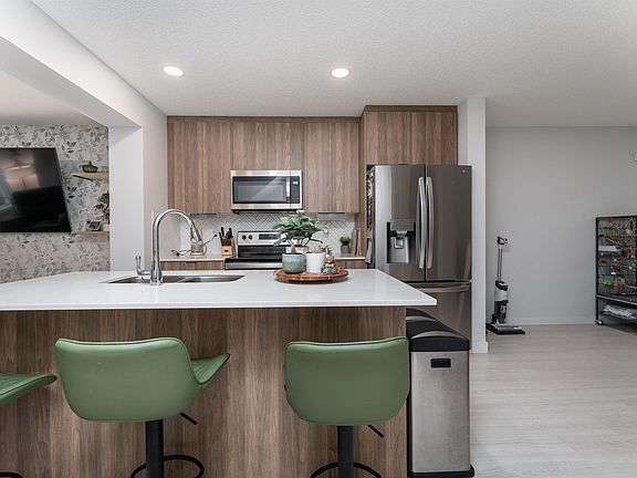 Stylish, modern, and move-in ready, this 1,095 sq ft 3-storey townhouse in the community of Kirkness has it all. The open concept design is filled with natural light, showcasing sleek cabinets to the ceiling, stainless steel appliances, granite countertops, and a large island with built-in sink that is perfect for cooking and entertaining. The dining area is spacious for hosting, while the family room features a striking accent wall that sets the stage for cozy movie nights. A convenient 2-piece bath completes the main floor. Upstairs you will find two generous bedrooms, each with walk-in closets and their own 4-piece ensuites, plus the bonus of upstairs laundry. Step out onto your private balcony to enjoy morning coffees or evening BBQs. With Rundle Park Golf Course, Clareview Town Centre, and the Clareview Recreation Centre and Pool just minutes away, this home offers the perfect blend of lifestyle and location. Do not miss this opportunity, your modern townhouse dream is waiting.