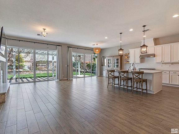 Single story stunner located in the highly sought after Toll Brothers community of Saddle Ridge - a desirable South Reno neighborhood. The open floor plan flows seamlessly, accentuated by custom light fixtures, tile floors, high ceilings and an abundance of windows to let in the natural light. The well appointed kitchen comes complete with quartz countertops, custom subway tile backsplash, a massive island, high end Kitchen-Aid appliances and a ton of storage. The great room is highlighted by . . . CONT, a floor to ceiling custom hearth with built-ins and bookshelves. The backyard will serve as your own personal oasis complete with a covered pergola, an outdoor gas fireplace, and a lush garden filled with roses, honeysuckle, wisteria vines, cedar, pine trees and more. The Saddle Ridge community has a plethora of phenomenal facilities including a staff managed security gate, clubhouse with pool, hot tub, sauna, full gym, tennis, pickle-ball, basketball, as well as a spacious event center complete with a kitchen, a perfect place to host parties and events.
