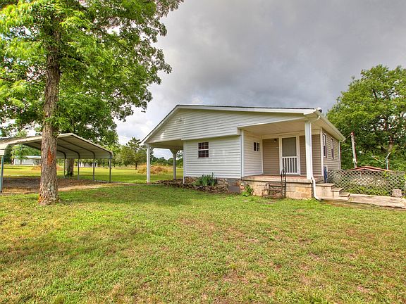 New landscaping and fresh paint on this 2BR home which includes 4 level acres. Separate tiled sun room. Two car carport, two outbuildings, covered porches. Office could be used as 3rd BR if needed (no closet).