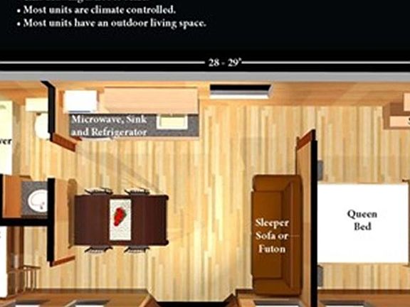 This fully furnished cabin offers a 6-month lease and is perfect for a single person, or someone with a child. The space has a full kitchen, bathroom, a bedroom, and a small bunk room. It is located within the Spokane KOA Journey and is available from November 1st to April 30th.