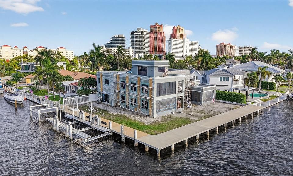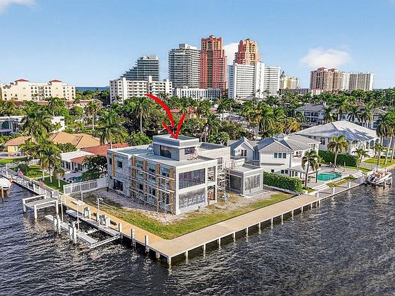 A rare & valuable find for both boaters & beach-lovers! Brand new custom PRIME POINT offers the ultimate SoFlo luxury lifestyle, over 200ft of waterfront, stunning open intracoastal views (108ft), wide side canal (96ft), 27,000lb boatlift & close proximity to Fort Laud Beach! Approximate completion end of 2025 & perfectly designed for entertaining, 3 levels include a sky lounge & roof terrace. Open Chef's kitchen & living areas capture endless waterway views & custom resort-style pool area & Summer kitchen The expansive primary suite is an inviting retreat with private covered balcony First level VIP guest suite is extremely private & welcoming, air cond 3 garage bays. Enjoy a unique opportunity to purchase brand new point, in up & coming Fort Lauderdale Beach. Interiors by Jaime Blomquist