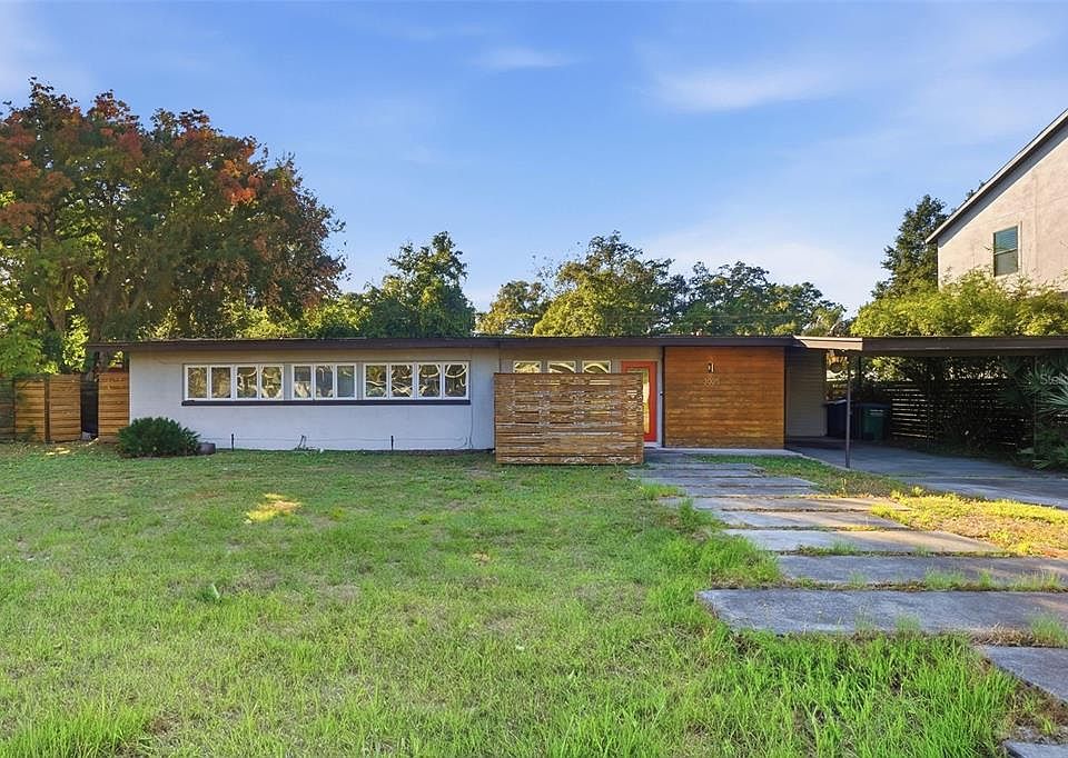 Mid-Century Modern Charm in the City of Winter Park! Enjoy living in one of the most sought after neighborhoods in Winter Park, adjacent to Baldwin Park and Audubon Park. This home blends timeless design with today’s updates—just minutes from shopping, dining, parks, and top-rated schools. Make this stylish retreat your own and experience the best of Winter Park living! Enjoy the comfort of this updated Mid-Century Modern home ready for you to make it your own! Featuring an oversized updated kitchen with a sleek black and stainless designed cabinet combination with frosted glass upper cabinets, and lots of granite countertops—perfect for entertaining or everyday living. All inclusive stainless steel appliances with a five-burner gas stove and hood and a breakfast bar with seating that flows into the bright and open great room. There the floor-to-ceiling windows make the room so special. The huge primary suite has double closets for lots of storage, room for a sitting area to relax and read or watch a show. The updated ensuite bath has a walk-in shower with beveled glass door and built-in shower seat. Other sought after features include an oversized walk-in pantry, large combined laundry/storage room, and covered carport. Newer double paned windows and sliders allow the home to be flooded with natural light, while a tankless water heater and recent AC adds modern efficiency.