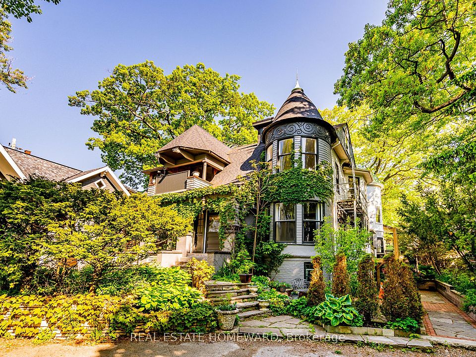 Own your own castle in the city!!! Rare 7-unit investment property with exceptional character and history, located in the Beaches and overlooking Lake Ontario. Known as Chateau de Quatre Vents (Castle of the Four Winds), this landmark was designed by the architect of Casa Loma and Old City Hall. The home has been converted into 7 self-contained suites, each with separate hydro. Three units are currently rentable; four units are under renovation with plumbing and electrical completed, ready for finishing. The layout includes five 2-bedroom and two 1-bedroom suites, with projected gross income of approximately $350,000 annually once completed. Although the civic address is Queen Street, the house is set back over 100 feet from the street on a bluff facing the lake, with sweeping views from most principal rooms. Access is from a walkway off Queen Street or via a winding driveway from Rockaway Crescent. The property is subject to a Heritage designation under the Ontario Heritage Act. Irregular lot buyer to verify lot dimensions and lot lines. Being sold under Power of Sale in as-is, where-is condition without representation or warranty from the Seller. Do not walk the property without an appointment.