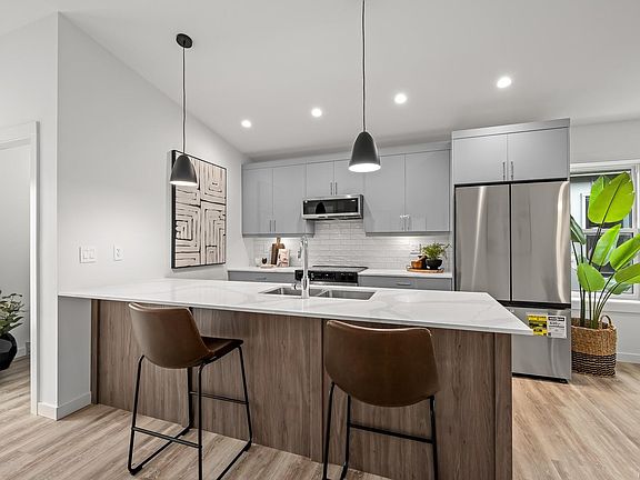 Welcome to our newest layout and our newest show suite, The Williamson. It is 1,130 sq ft, and has 2 bedrooms, 2 bathrooms and a very flexible den space. The Williamson has a fantastic open concept design with a Kitchen, Dining, Living and Outdoor space all in a convenient flow. The kitchen island is long and perfect for entertaining family and friends. Relax in the vaulted ceilings whilst enjoying the warmth and coziness of the natural gas fireplace. In addition the heat pump will heat and cool efficiently. The rear private patio is your sanctuary to unwind and enjoy nature and forest views. The primary bedroom features a large built-in closet with two sliding doors and access to a serene 3 piece ensuite. Don't forget the laundry room and upper cabinet storage. The den offers so much potential as an office, exercise, hobby or spare room. Check out our video walkthroughs and information at www.theflatsofcumberland.ca GST applies. Book your showing today