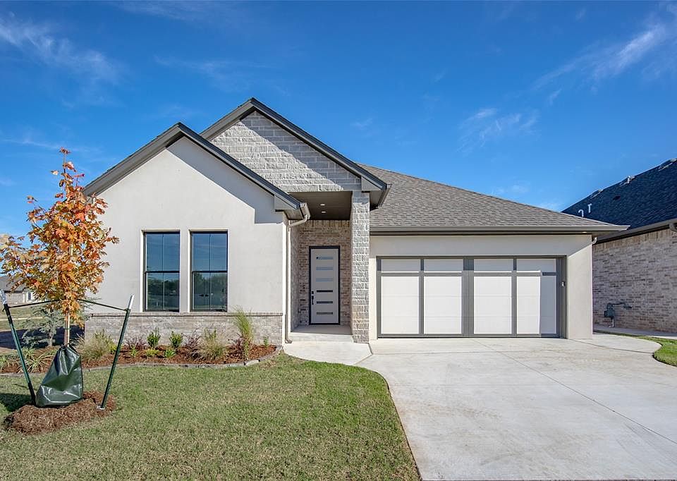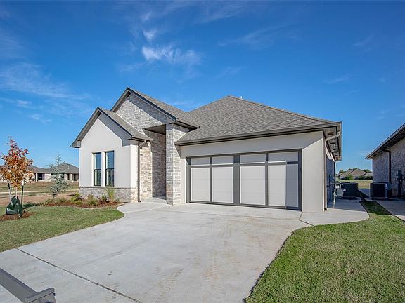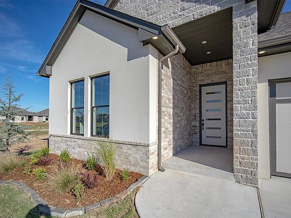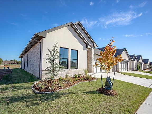 Welcome to this BRAND NEW ADDITION in SOKC. Be a part of the maintenance free community behind the GATES with a LOCK and LEAVE lifestyle. Great curb appeal with STUCCO fronts and MARVIN WINDOWS. The interior has a WOOD LOOK TILE through the main areas with an OPEN CONCEPT kitchen. The living area has custom FIREPLACE with wood surround to the ceiling. Kitchen features: BOSCH APPLIANCES, QUARTZ tops, cabinets to ceiling with lighting in the uppers, GAS RANGE, pot filler faucet, and PANTRY. The primary sits at the back and is large with a beautiful ensuite that includes: a DOUBLE VANITY, under cabinet floor lighting, SHOWER WITH SEATING, a large walk-in closet CONNECTING TO LAUNDRY AREA, and a deep JETTED TUB. The back yard has a HUGE wrap around PATIO with plenty of space. UPGRADES: SPRINKLER SYSTEM, Smart Home Security, FENCE, blinds, 8' interior doors, STORM SHELTER and a TANKLESS water tank. HOA covers mowing and will have a COMMUNITY CLUBHOUSE.